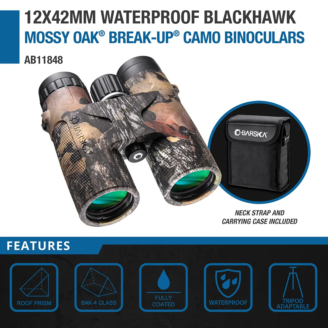 BARSKA (AB11848) 12x42mm Blackhawk Waterproof Binoculars, Mossy Oak® Break-Up® Camo
