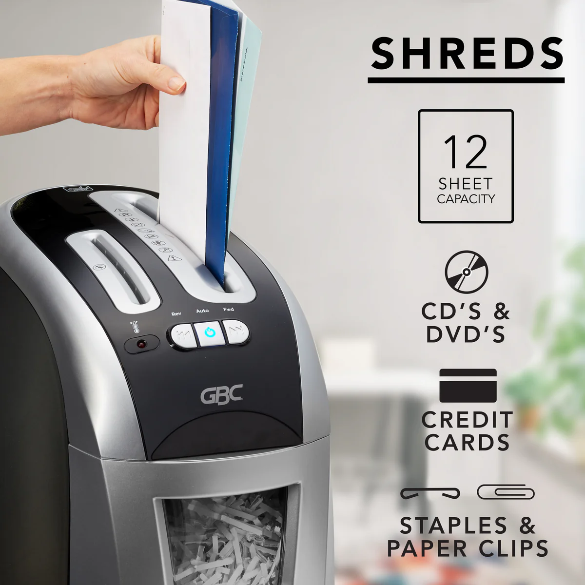 GBC EX12-05 is a compact and powerful office shredder for destroying everyday junk mail to sensitive, personal documents.